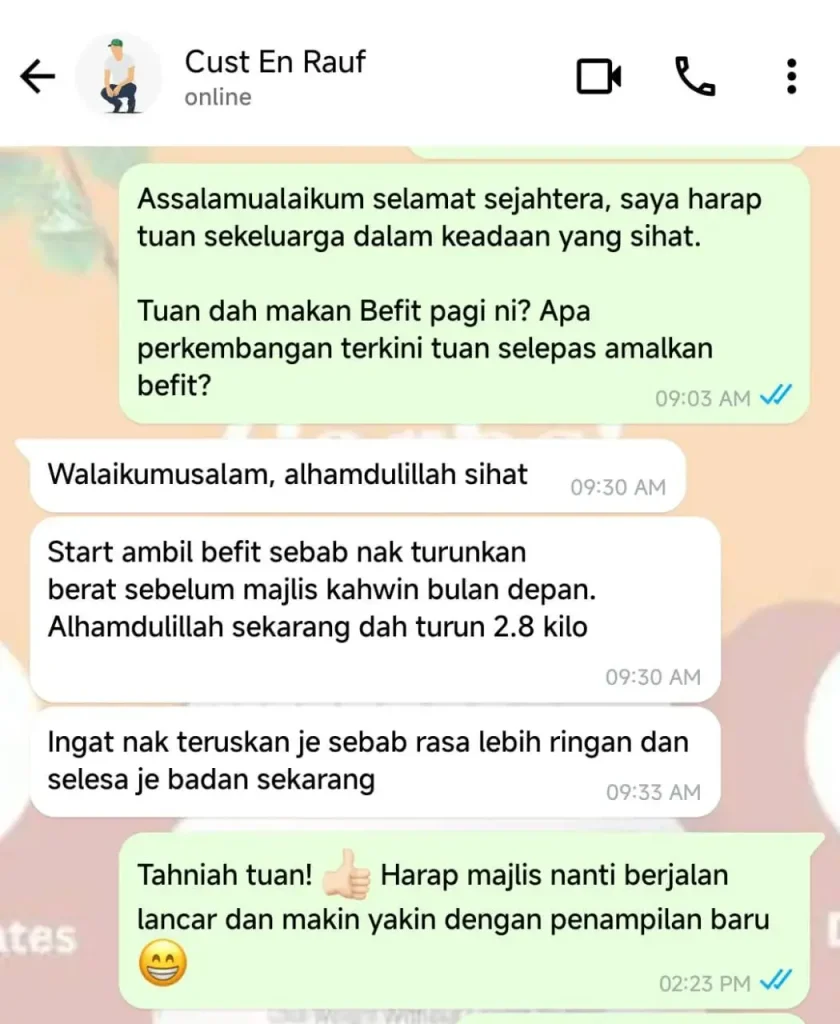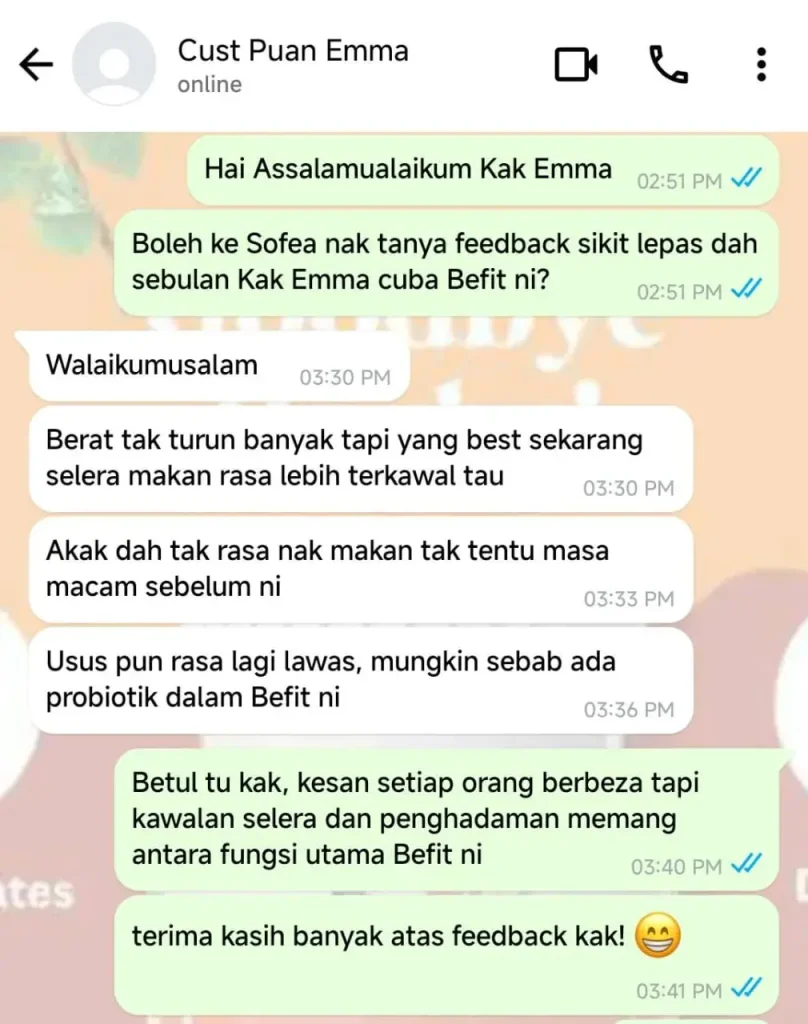 Anda dapat jaminan sekuat ini kerana Produk BeFit sudah berjaya membantu ramai orang yang mempunyai masalah SAMA SEPERTI ANDA dan ia terbukti berkesan.