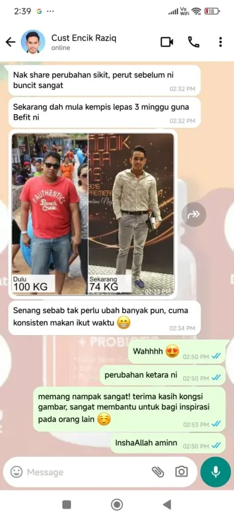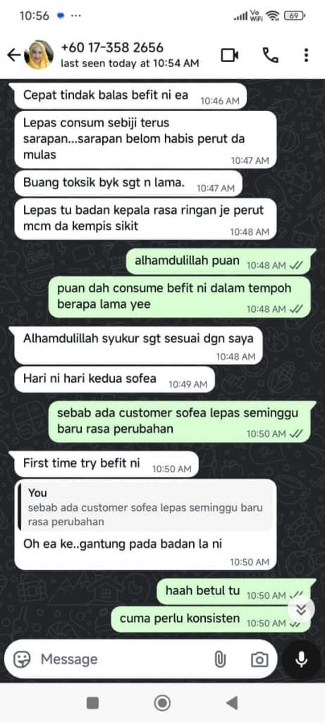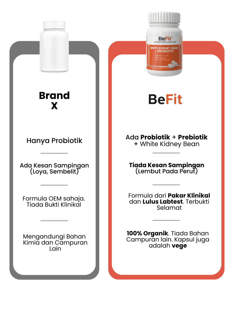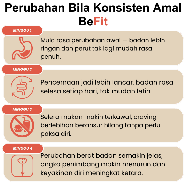 Dengan penggunaan konsisten, BeFit bantu kurangkan berat, kempiskan perut dan stabilkan tenaga harian.