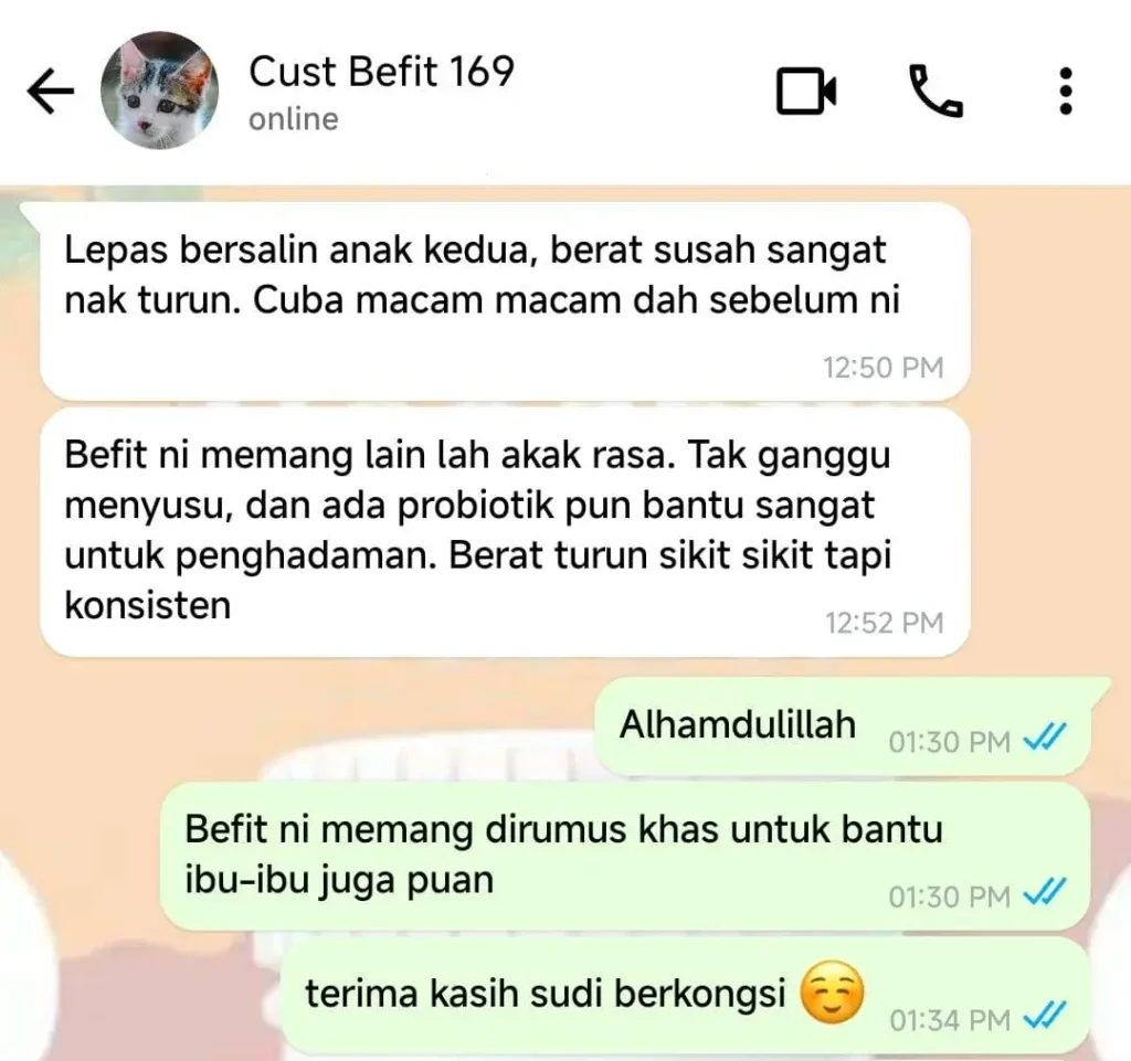 ❗ BeFit tidak sesuai untuk wanita mengandung atau menyusu tanpa rujukan doktor.